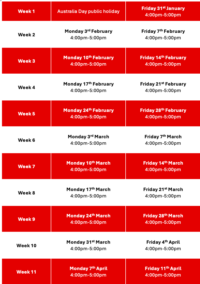 We follow the South Australian school terms for our Recreation and TID sessions. We currently do not have sessions throughout the school holidays. We may on occasion offer holiday training for our TID squads. Our payment structure allows for half-term or full term enrolments.